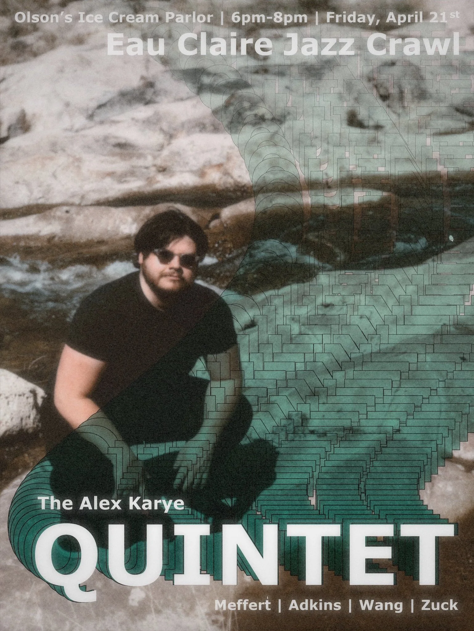 Gig graphic for upcoming Eau Claire Jazz Crawl featuring The Alex Karye Quintet.